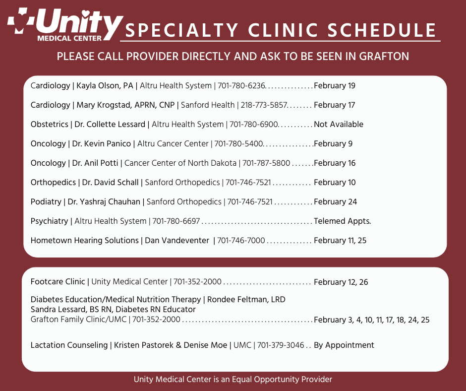 Visiting Providers & Services Offered at Unity Medical Center